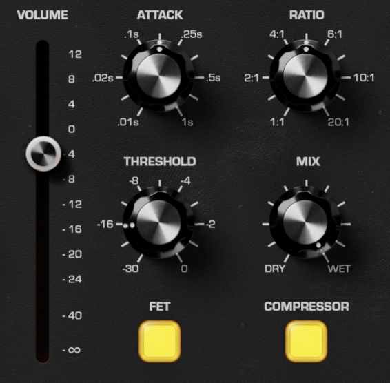FET – Enables emulation of an analog FET compressor with feedback introduced in the compressor.