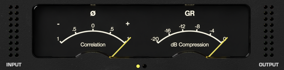 Mariana contains multiple meters for visual indication of different aspects of your sound, allowing you to dial your sound in precisely. By default the Ø and GR meters are shown – clicking on the meters will switch to the L/R meters.