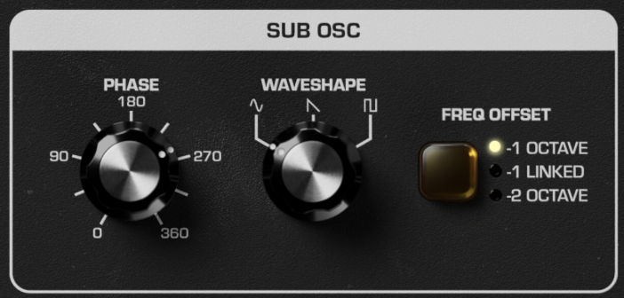 WAVESHAPE – Selects the waveshape of the sub-oscillator, which can be either sine, sawtooth, or square.