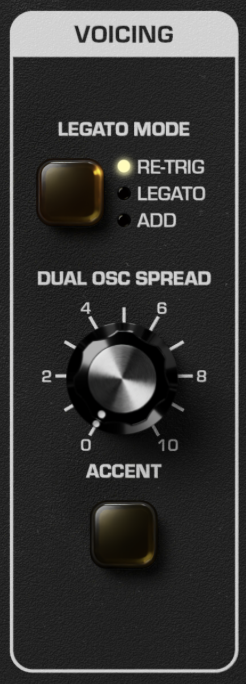 RE-TRIG: Retriggers the envelope generators when a new note is played in legato style
